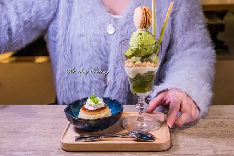 身為布丁控看到有布丁直接+1,他們家的布丁非常的ㄉㄨㄞ,綿密的口感夾帶著濃郁奶油香,吃上一口有種幸福滋味。另一個則是堂本馬卡龍帕菲,各種甜點層層堆疊視覺效果很吸引人,吃的到抹茶果凍、抹茶巧克力、抹茶冰淇淋、抹茶餅乾、馬卡龍餅乾等,喜歡吃甜點的選這個不會錯。
