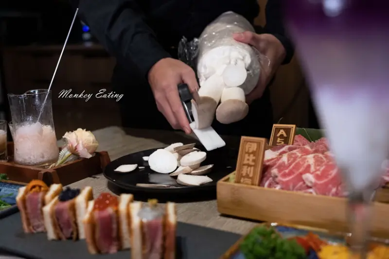 桌邊現剪新鮮太空菇,一個從產地直送餐桌的概念,每支杏胞菇都好大啊~