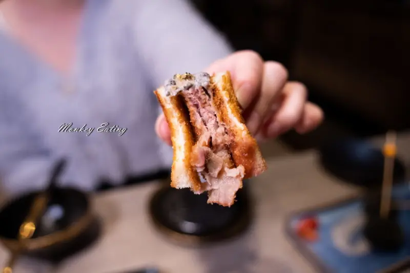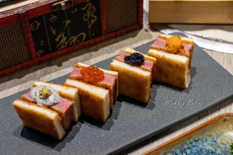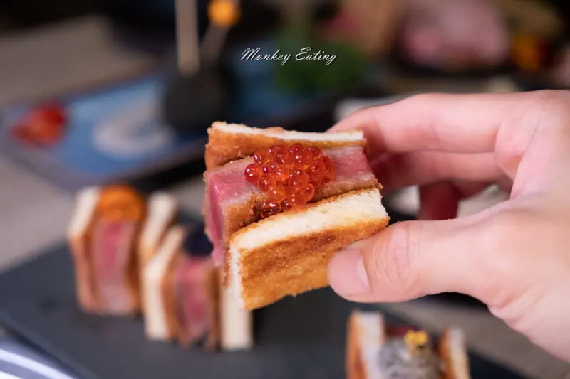 和牛吐司也是這裡人氣商品之一,吐司烤的外酥內軟,這和牛給的厚度實在很有誠意,肉質也相當軟嫩。體驗一下財富自由的味道,松露美乃滋、鮭魚卵、魚子醬、海膽等高檔美味一次擁有,一口下去滿滿鮮甜,跟日本和牛搭配在一起的滋味實在太美妙了。