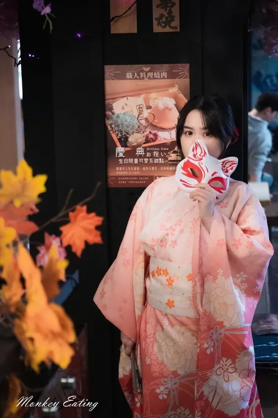 用餐完畢即可享有免費和服體驗也是這裡一大特色,可告知服務人員試穿和服體驗,裡面大人小孩的服裝都有可以挑選。另外有多種道具可以使用,像是髮飾、面具、紙傘、木屐、扇子等,可以穿搭出自己喜歡的感覺唷。