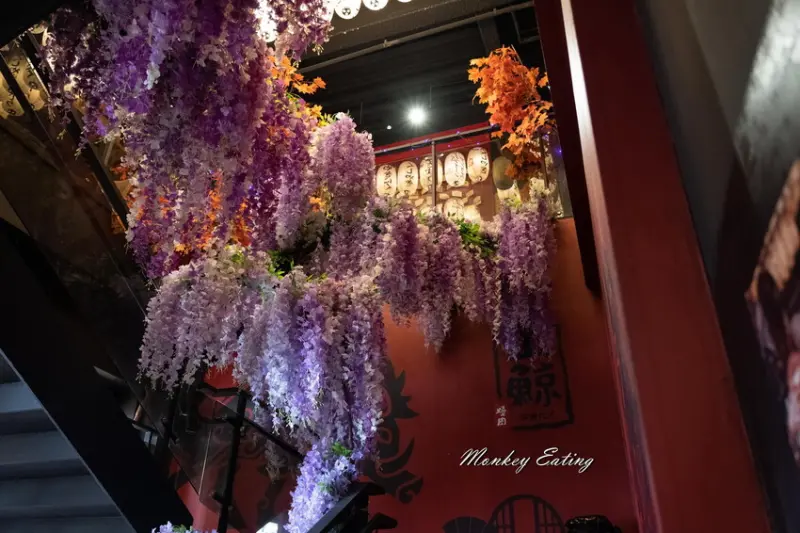 二樓完全是個截然不同的場景,運用了許多櫻花、楓葉、紫藤花以及燈籠造景,唯美日式風格帶你一秒到日本。