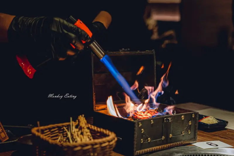 牛排會先放入烤盤上炙烤,接著烤完的牛排會放入箱中,以獨特的稻燒手法加以煙燻,牛排多了一股燻草味相當迷人。