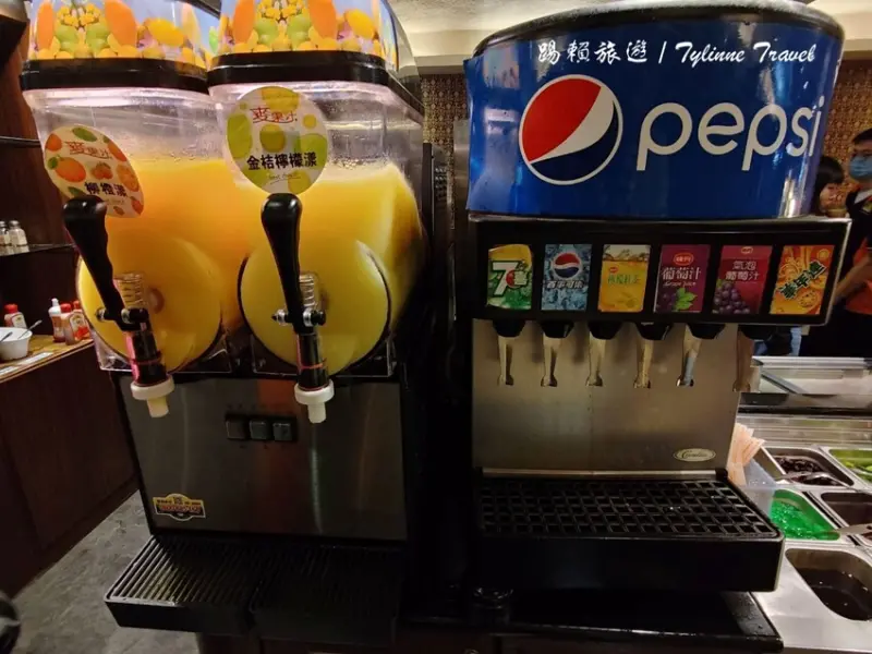 飲料機有滿多台,除了冰沙和一般飲料外還有果醋可以喝,如果是想要泡咖啡或自行泡茶都可以,飲水機上還有茶包可以使用