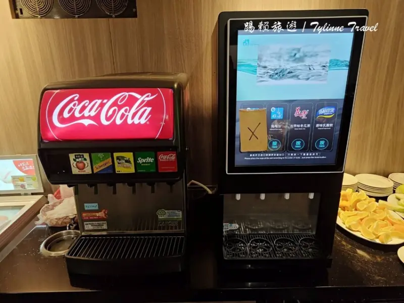 除了蒙古烤肉自助區,還有一些小點心可以隨意取用,比如剉冰、燒仙草、以及水果,還有冰淇淋機和飲料機,提供不同口味的選擇。