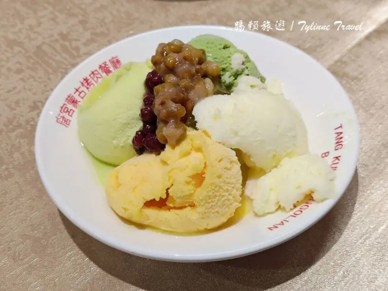 吃完火鍋和烤肉之後,別忘了來點甜點!餐廳自製的剉冰非常好吃,下面鋪上火龍果,上面再加上芋圓等配料,口感清爽又消暑。吃完剉冰,接著來一球冰淇淋,口感綿密,甜而不膩,是完美的結尾!