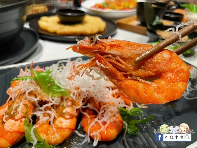 大蝦軍團來襲:乾燒蝦鮮甜又涮嘴,每一隻都紅得像在喝喜酒,還貼心去殼,吃起來超愜意!