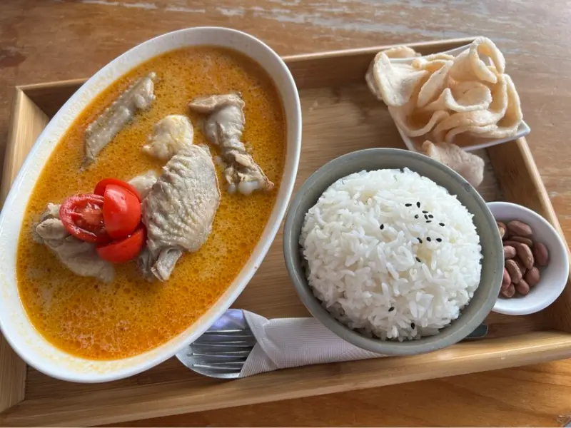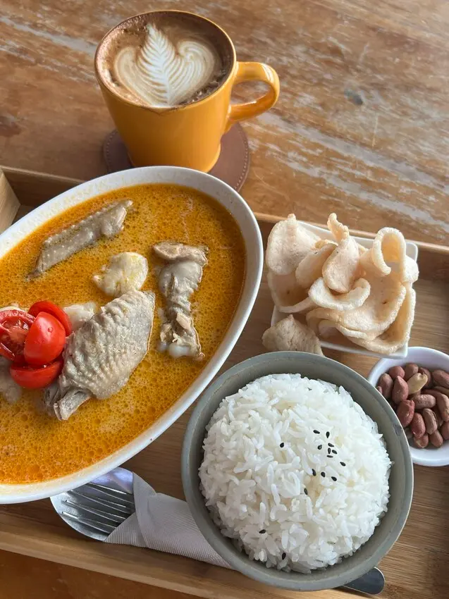 公主點了南洋叻沙雞肉飯以及一杯龍眼蜜拿鐵