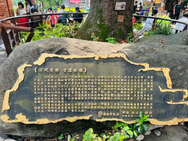 深坑因地理位置四面環山,形似坑底而得名,是一個距離有點遠又不太遠的遠離市區商圈老街。老街入口有一顆大茄冬樹是這裡的地標,看到老樹就知道老街在那裡了,老街上最有名的是豆腐美食,因為清澈的水質以及特殊鹽滷製法所製作的豆腐,其炭味口感吸引了許多饕客,大家都稱呼深坑爲成「豆腐故鄉」,很多當地人或遊客都因爲這裡好吃的豆腐而慕名而來。深坑有四寶「茶葉、豆腐、竹筍、黑豬肉」,因為清澈的水質的關係,所以都能一直保持著它們極佳的品質,成為在地著名的特色
