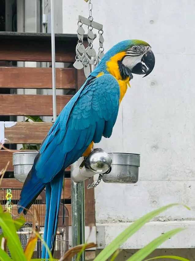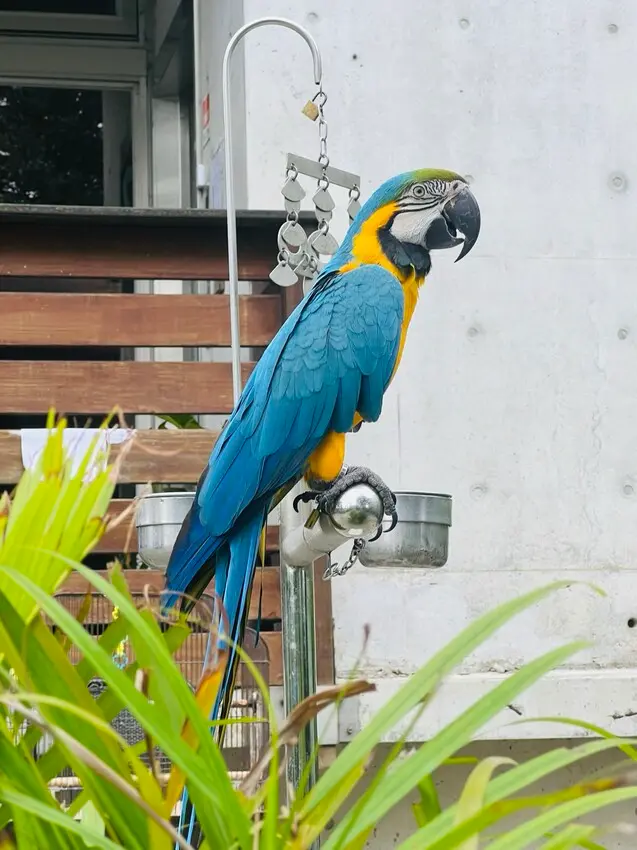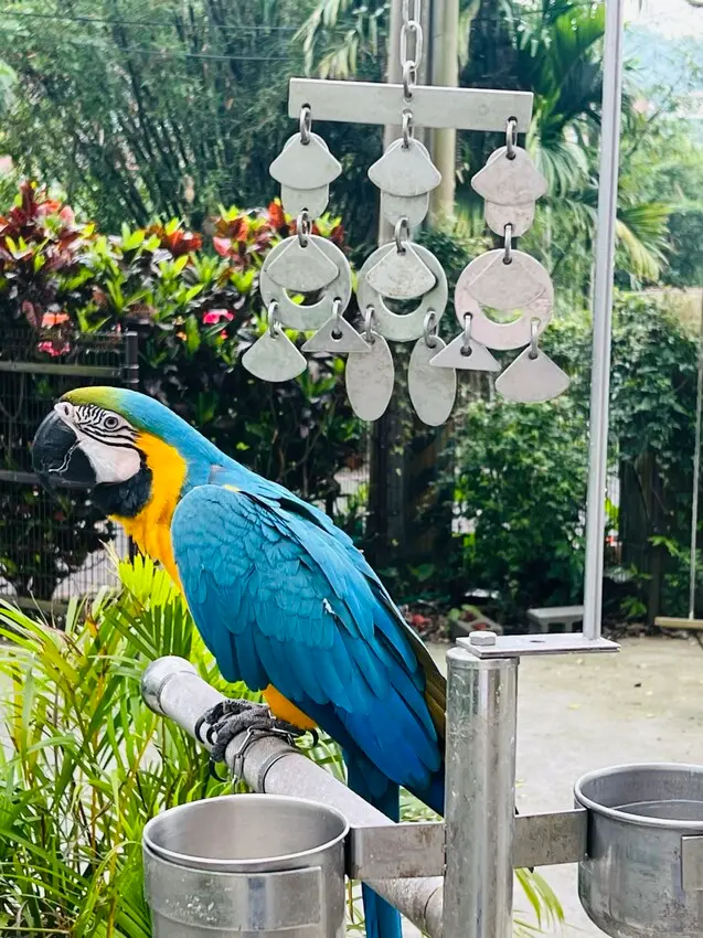 咖啡廳的門口就有一隻可愛的鸚鵡迎接客人的到來