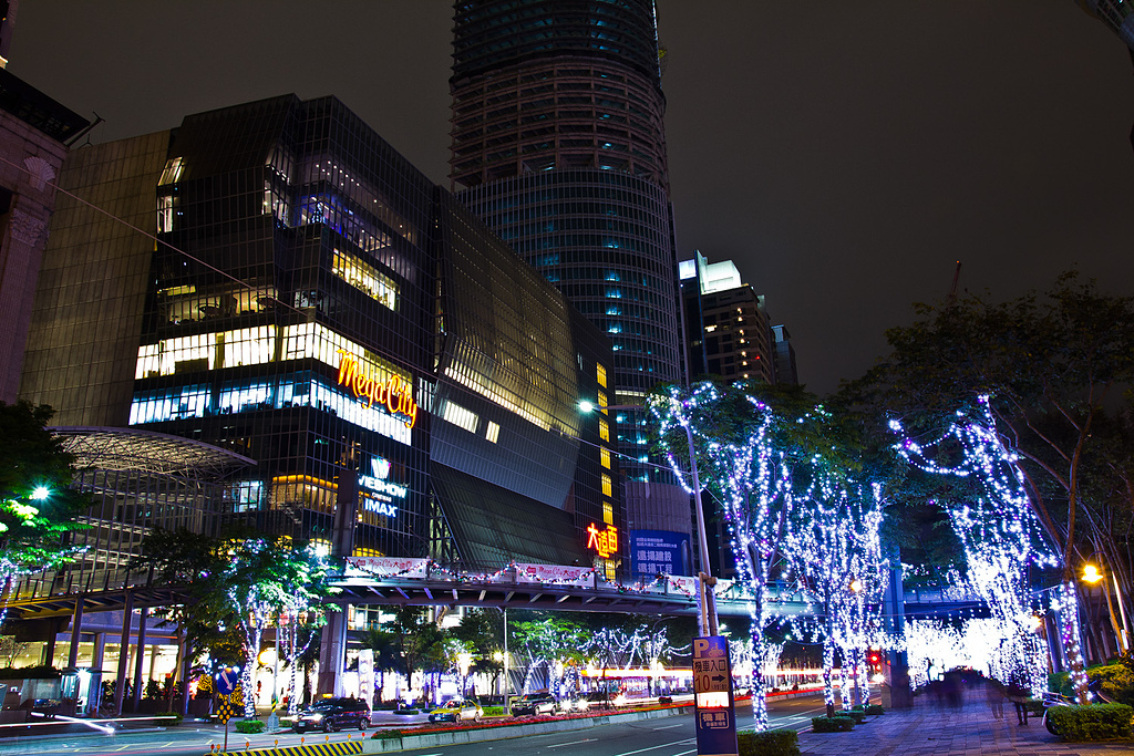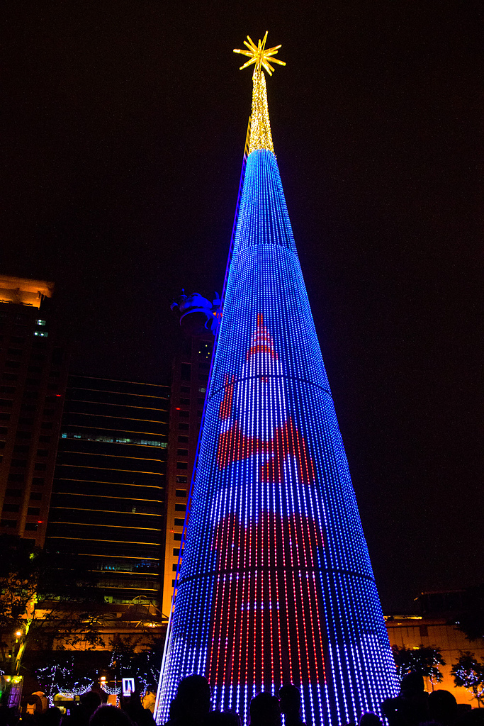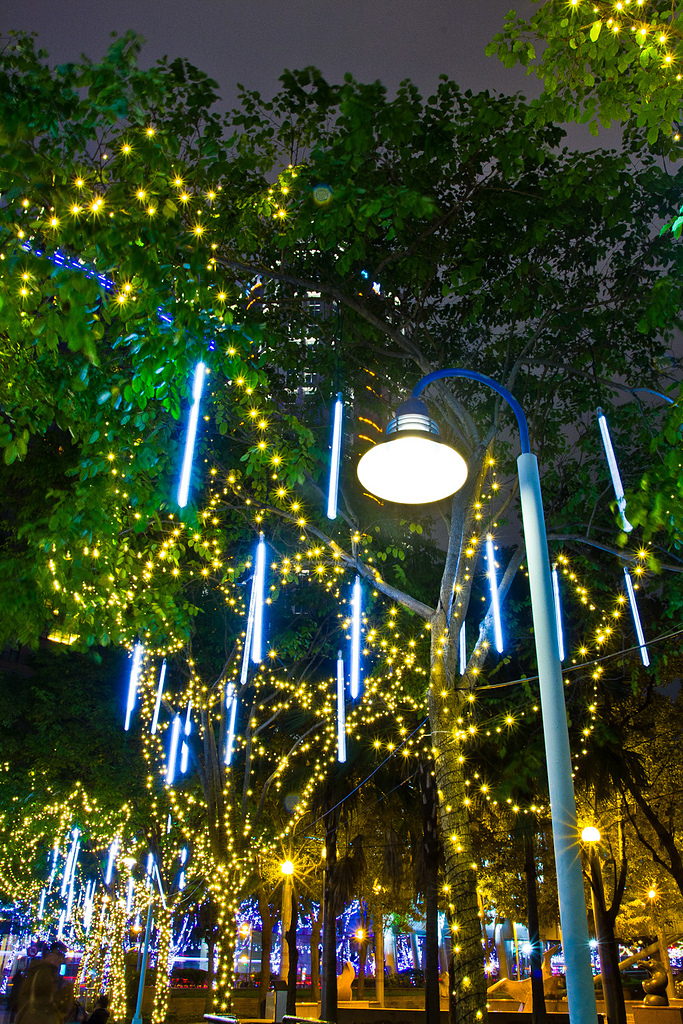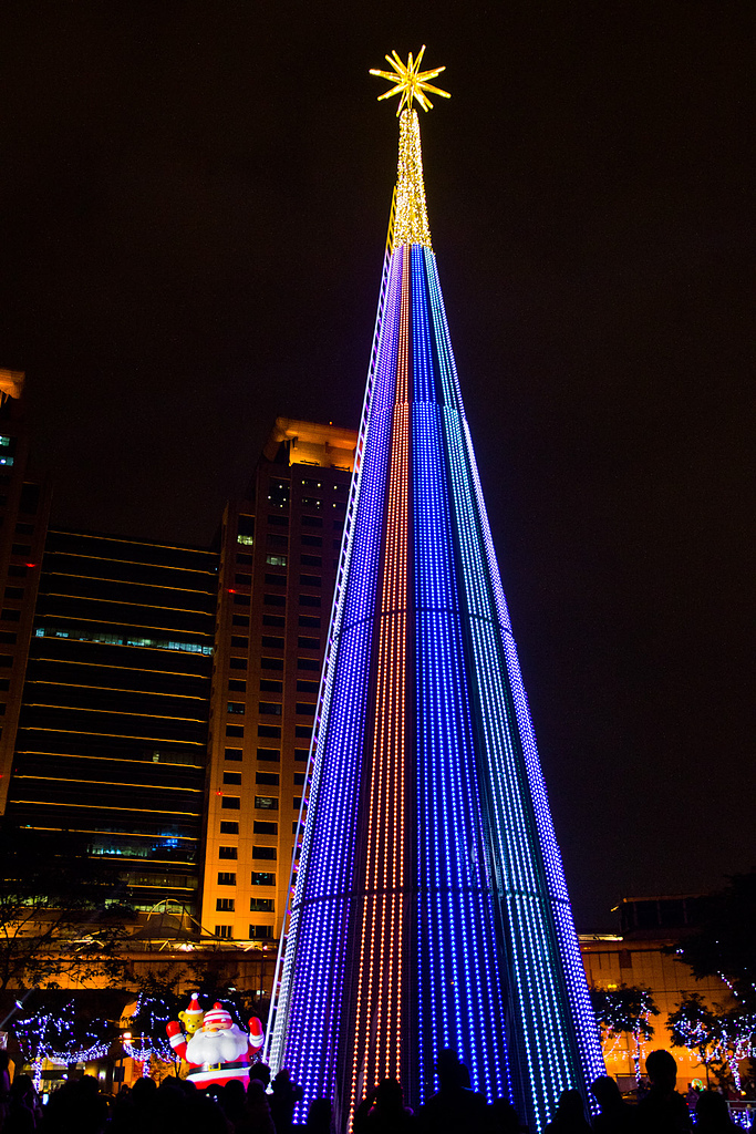 耶誕樹的整體五顏六色的色彩,也點亮了新板的夜空