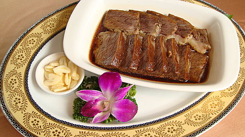 台中日光溫泉會館的中餐廳裡最受歡迎的菜色,是西菜中吃的烤牛小排,