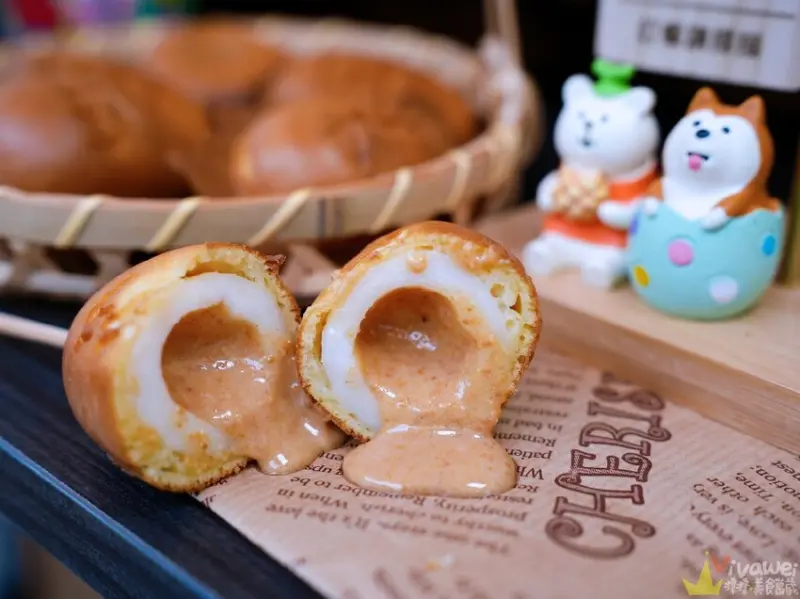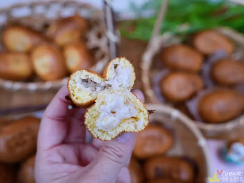 ▲這根本就是創意口味的雞蛋糕啊!裡面居然還包入湯圓!有花生口味或芝麻口味可以選擇!不過吃這款雞蛋糕可要小心喔,不然一口咬下內餡可是會爆漿的,不要噴到整身都是了😂