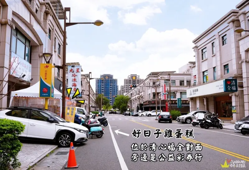 ▲「好日子雞蛋糕」位於尚順商圈周邊,地址是『苗栗縣頭份市東民三街15號』,就在清心福全對面及公益彩券行的旁邊!地點還蠻好找的👌