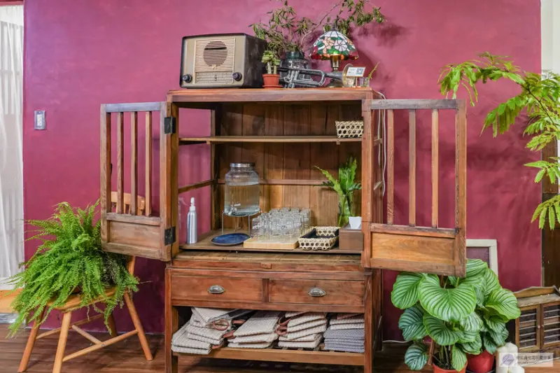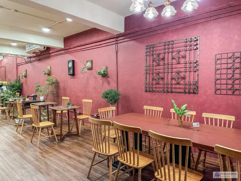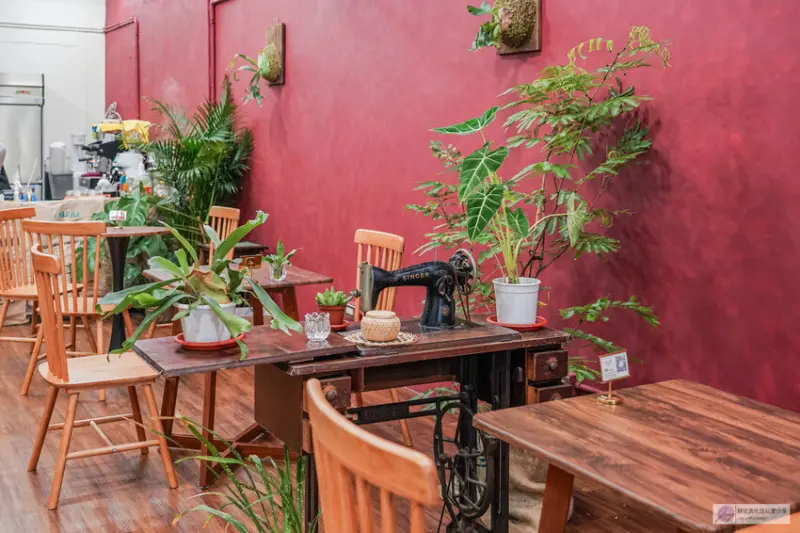 店內空間非常寬敞,桌椅之間保有適當間隔,提供舒適的用餐環境。磚紅色的主色調搭配50年代復古窗花、60年代經典收音機、縫紉機、木質家具及綠色植栽,整體散發濃厚的復古文青氛圍。每個座位區還貼心設有插座,非常適合需要使用電腦或3C設備的客人。