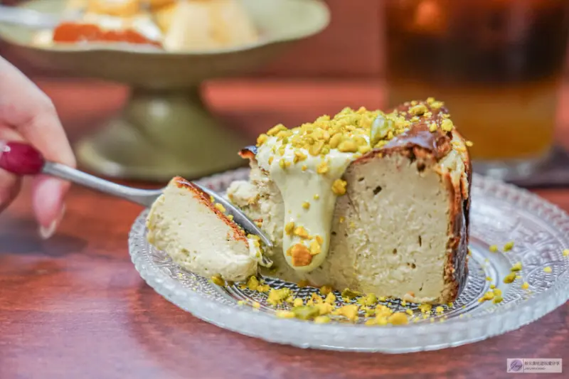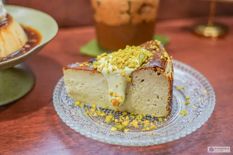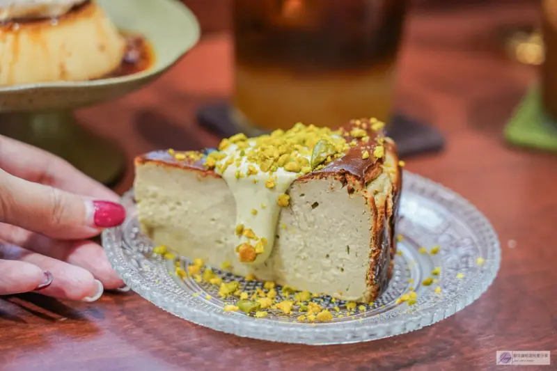 如果你是開心果控,這道甜點絕對不能錯過!巴斯克乳酪蛋糕擁有濃郁的乳酪香氣,搭配細緻的開心果風味,蛋糕上淋有開心果鮮奶油並撒上碎粒,增添層次感。濃郁又不膩口,口感綿密入口即化,讓人一試成主顧。