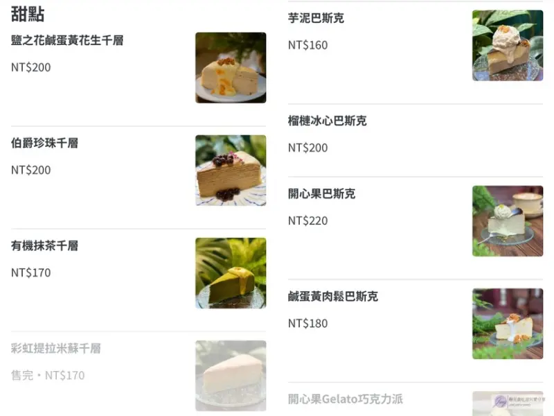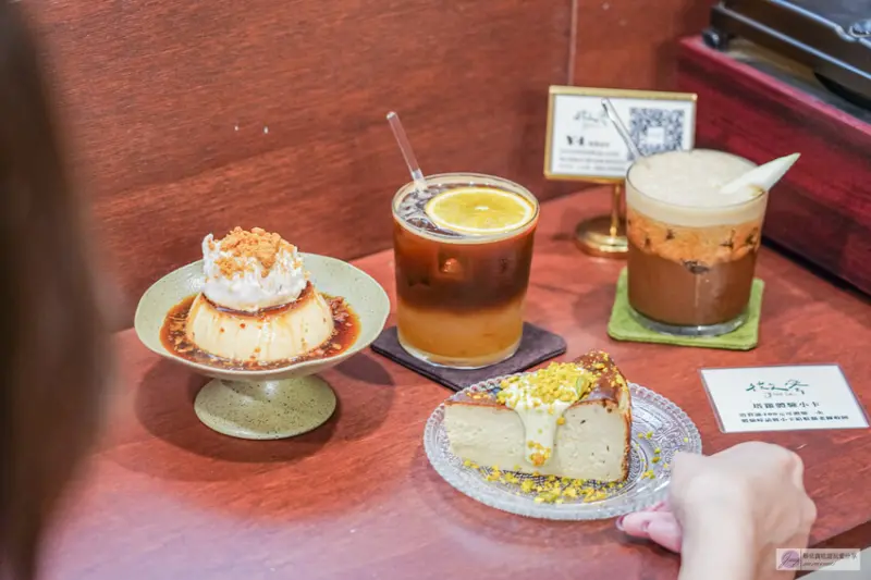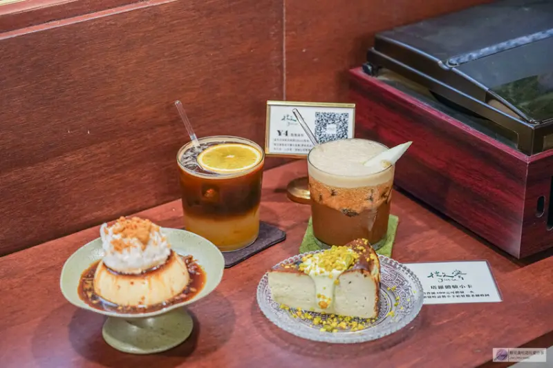 菜單內容包括甜點、咖啡和飲品,價格介於$100到$220之間,選項豐富多元。每人低消一杯飲品,且用餐時間不受限制,十分友善。