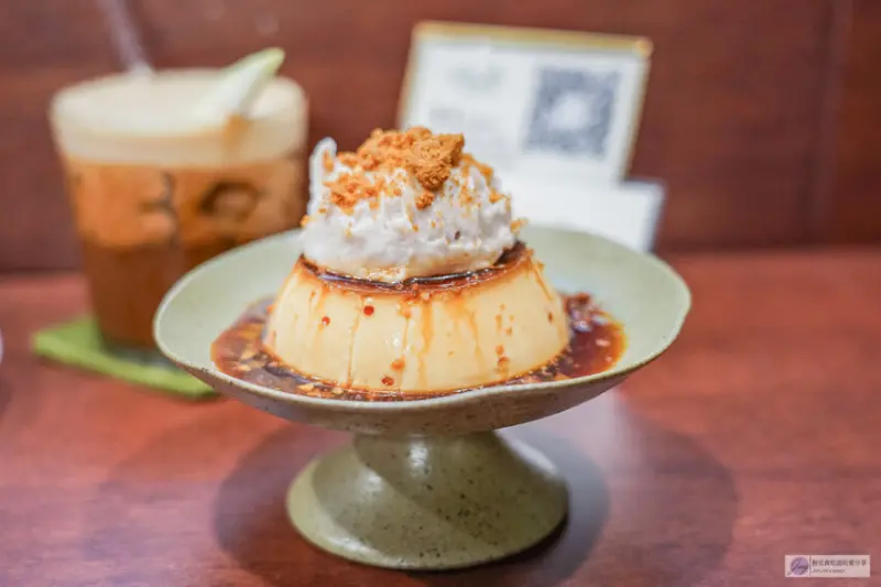 芋泥迷必點的甜品!布丁上鋪著一大球綿密芋泥,再撒上鹹甜交融的肉鬆,風味獨特。芋泥甜度較高,搭配滑嫩的布丁與鹹香的肉鬆後,味道層次豐富,讓人回味無窮。