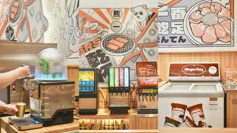 熊一燒肉基隆店提供超齊全的暢飲吧,最低598元就包含海尼根生啤酒喝到飽,真的超級划算,滿足吃燒肉配啤酒的完美享受,飲料吧有汽水機、果汁、茶飲、咖啡機、沙瓦等等應有盡有,還有哈根達斯冰淇淋吃到飽唷!