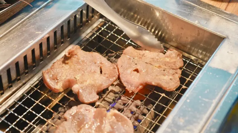 熊一有提供牛舌吃到飽唷!薄切牛舌也是必點的品項,可以至醬料區拿取蔥鹽做搭配,牛舌口感很彈牙,薄切吃起來更脆口,口感很棒唷!