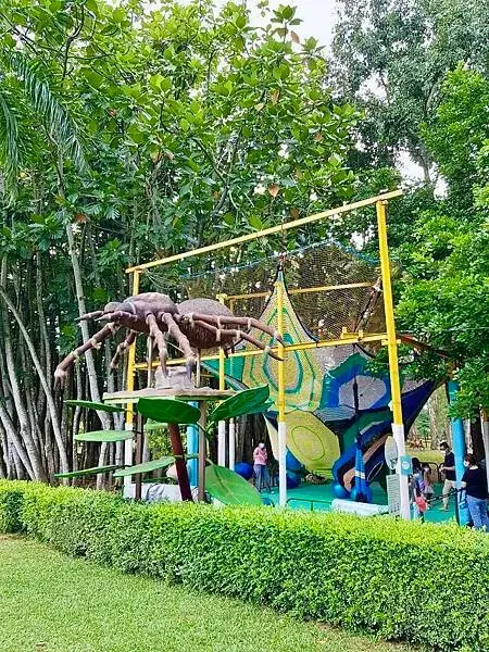 毛小孩和小朋友的天堂!寵物園區可以讓狗狗盡情跑跳,而沙坑與捕夢網設施則是孩子們的遊樂天堂。