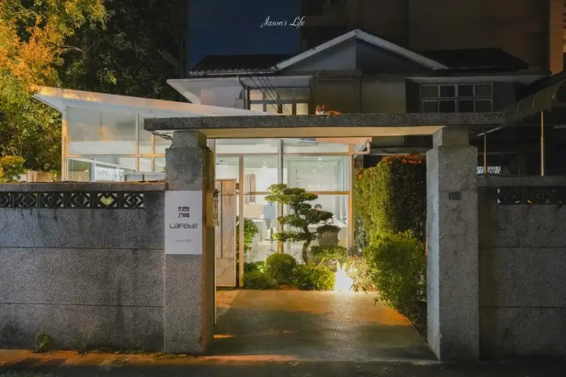 LAFETE.法月隱藏於存中街的小巷內,剛進入門口,便會被優雅的透明玻璃屋吸引目光。沿著小徑行進,還能發現許多精心設計的巧妙細節。