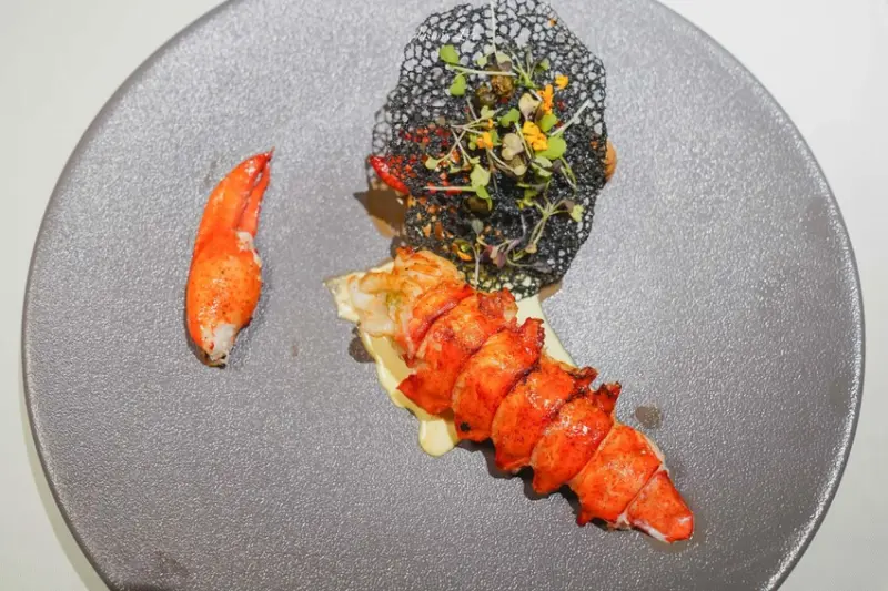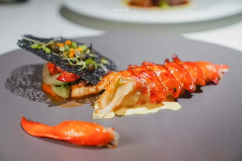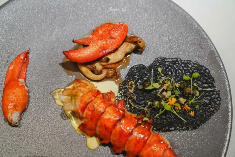 大隻的龍蝦肉搭配檸檬奶醬,既鮮嫩又彈牙,下方鋪設的竹炭薄皮更增添創意與口感。兩個完整去殼的大螯,讓顧客可以優雅地享用整隻龍蝦,肉質新鮮,口感飽滿,是這場法式饗宴中的奢華之選。