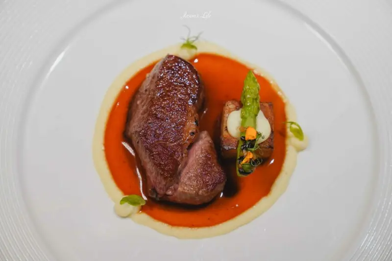 這道鴨胸的特色在於保留了酥脆的鴨皮,帶有微甜的香氣,而粉嫩的鴨胸肉質鮮嫩多汁,完全不乾柴。酸甜平衡的醬汁更是畫龍點睛,讓整道料理更加美味動人。