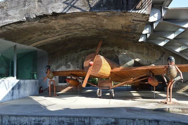 而廣場的焦點,無疑是那架仿照神風特攻隊打造的竹製戰鬥機!這可是當年日軍用來迷惑美軍的「秘密武器」,雖然只是模型,但其獨特造型絕對是遊客們必拍的打卡熱點!