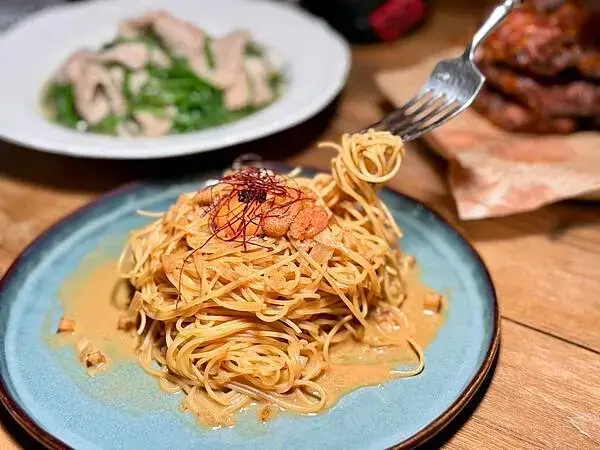 新鮮海膽與魚子醬完美融合在義大利麵中,麵條Q彈吸附醬汁,奢華又不失簡單的經典美味!