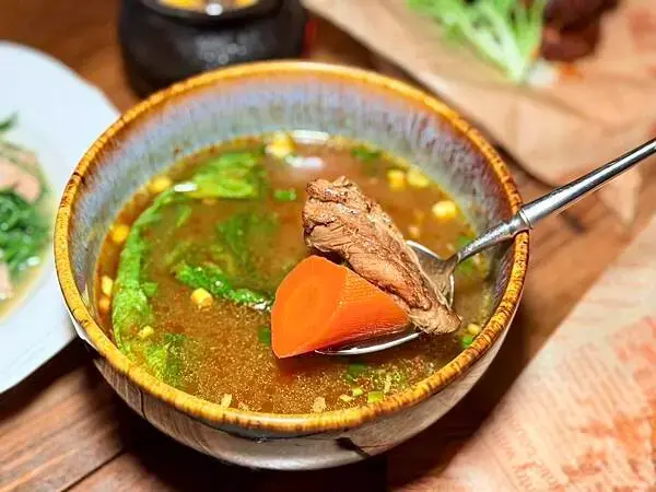 紅燒牛肉湯湯經過長時間熬製,湯頭甘醇順口,軟嫩入味的大塊牛腩、渾厚湯汁喝起來瞬間感受到從心底湧上的溫暖。