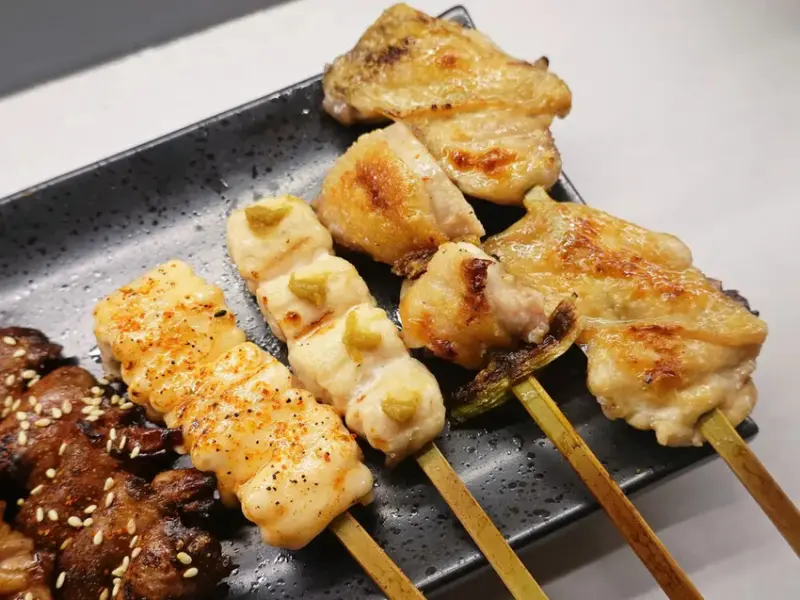 六串燒鳥一次滿足,包括柚子鹽雞胸、明太子雞里肌等不同部位,全都是嚴選放牧土雞,加上細膩烤工,吃起來多汁又安心,搭啤酒簡直無敵!