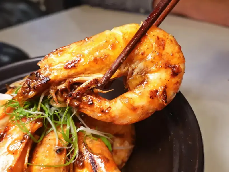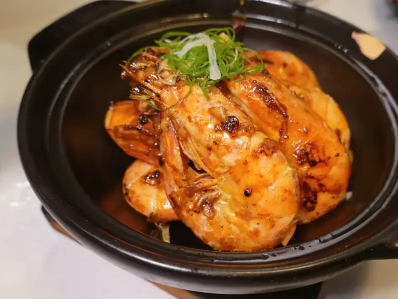 居酒屋少見的臺式胡椒蝦,砂鍋燜烤的蝦肉鮮甜Q彈,胡椒香濃不嗆口,令人回味無窮。