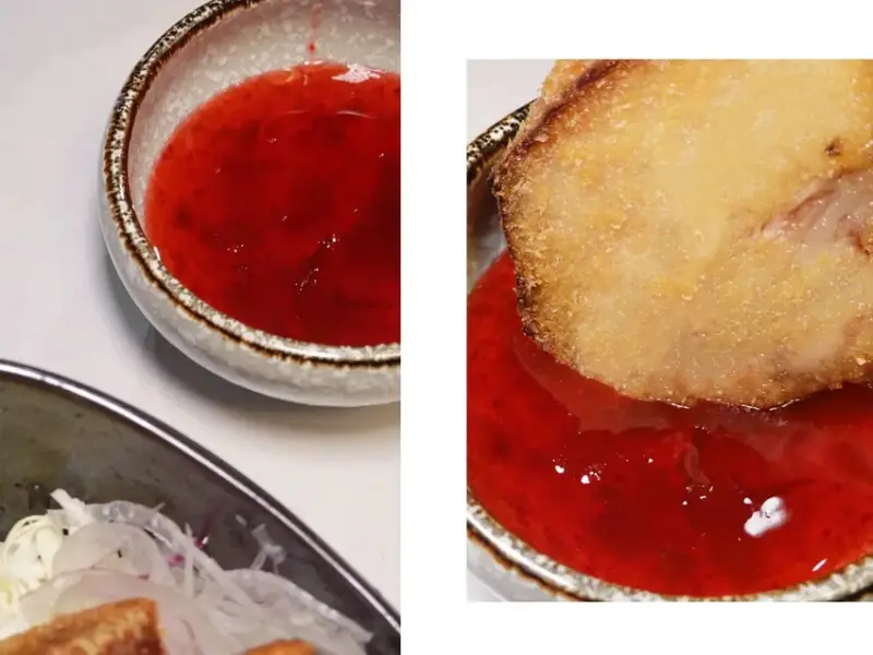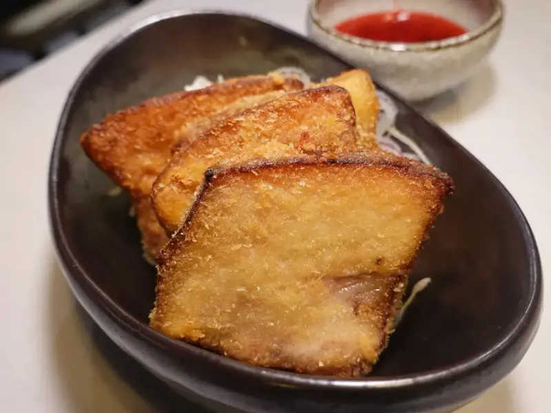 三層肉炸得酥脆,搭配自製梅醬,一口咬下,甜鹹酸完美結合,油膩感被酸梅醬平衡得剛剛好,份量小巧卻超滿足。