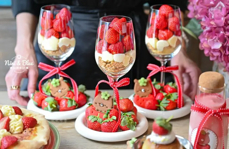 雛菊見的芭菲甜點不只是多層次的豐富口感,而且有著讓人驚豔的外觀,底部還躲著一隻可愛草莓小熊,一上桌大家顧不上吃就趕緊先搶拍再說~