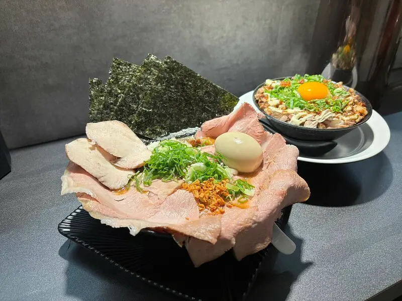 板橋江子翠超濃郁的拉麵在這!整碗拉麵被粉嫩的叉燒肉片蓋滿,Q彈的粗麵條,吸附濃濃的豚骨高湯,每一口都是滿滿幸福~不僅拉麵超威,叉燒飯更是必點!炙燒到剛剛好的叉燒,淋上香濃的美乃滋,香氣直接爆棚!份量十足,絕對可以滿足你的味蕾和胃口。無論是想來一碗暖胃的拉麵,還是大口扒飯的快樂,這間真的超推薦你們來吃。