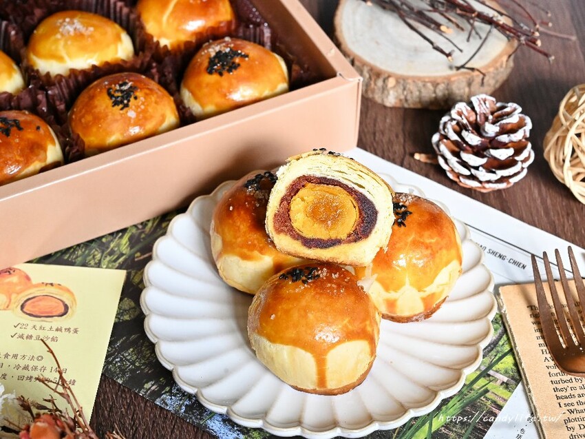 鹽之花蛋黃酥採用日本麵粉、紐西蘭無水奶油、低糖紅豆沙、紅土鹹鴨蛋及法國鹽之花製作而成,每天新鮮製作