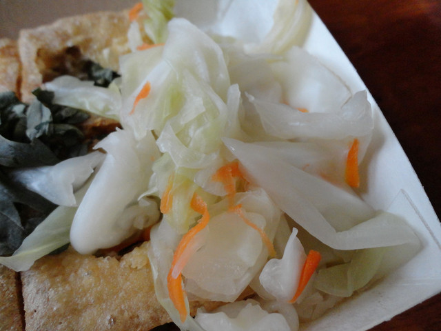 滋味確實不錯,算是店裡 Vic 嚐過最愛的單品,每次外帶一盒,吃完都有種意猶未盡的感覺,口味有些接近台東知名的林家臭豆腐;相較於從小都是吃較傳統台式臭豆腐的 Vic ,總覺得它的味道淡了些(好啦!我們熱帶地區都吃重口味@@),不過偶爾品嚐感覺還是不錯的喲~