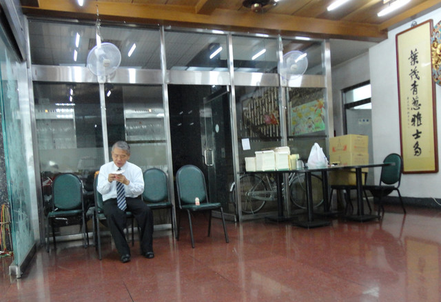 那天在等便當時,現場還有一位老闆在吃飯糰。