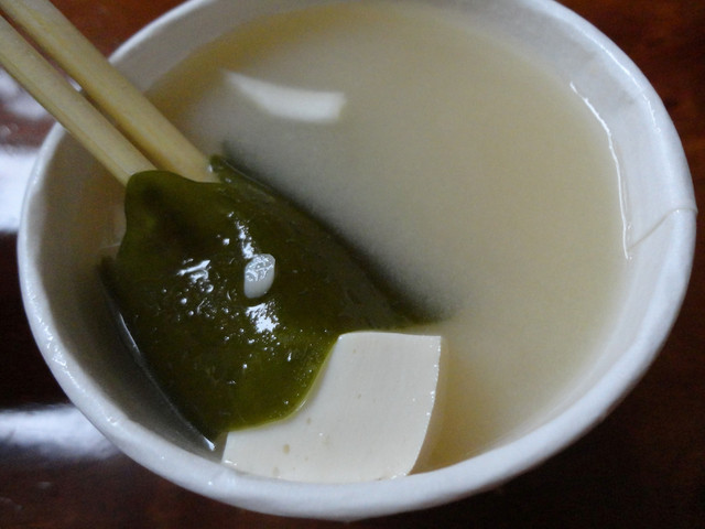 這次的是味噌湯(裡面有一片海帶和幾塊豆腐)