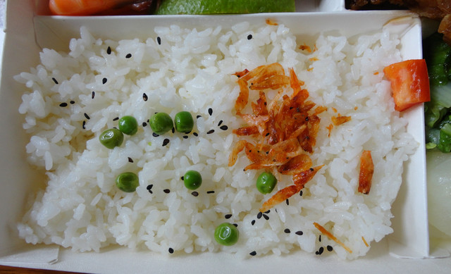 白飯則灑上黑芝麻、青豆和櫻花蝦。