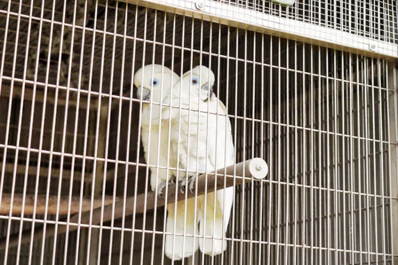 戶外草地還有一個大鳥籠!裡面有大鸚鵡~