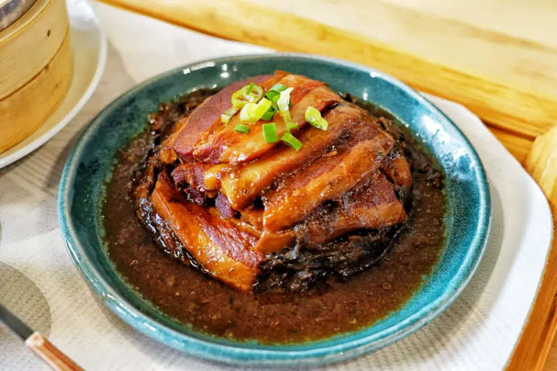 經典客家菜「梅干扣肉」朋友給第一名!梅干扣肉一吃就知道經過長時間燉煮,五花肉整體口感一致軟嫩,肥肉不膩、瘦肉不柴還很軟嫩~