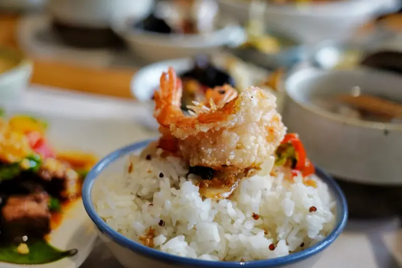 朋友點了圓籠蒸蝦有8隻白蝦!平時外面都是水煮白蝦或炒蝦,很少看到有賣蒸蝦,蒸蝦肉質Q彈,吃的到白蝦本身鮮甜味,重點這是軟殼蝦可直接吃,不用剝殼怕用髒手~
