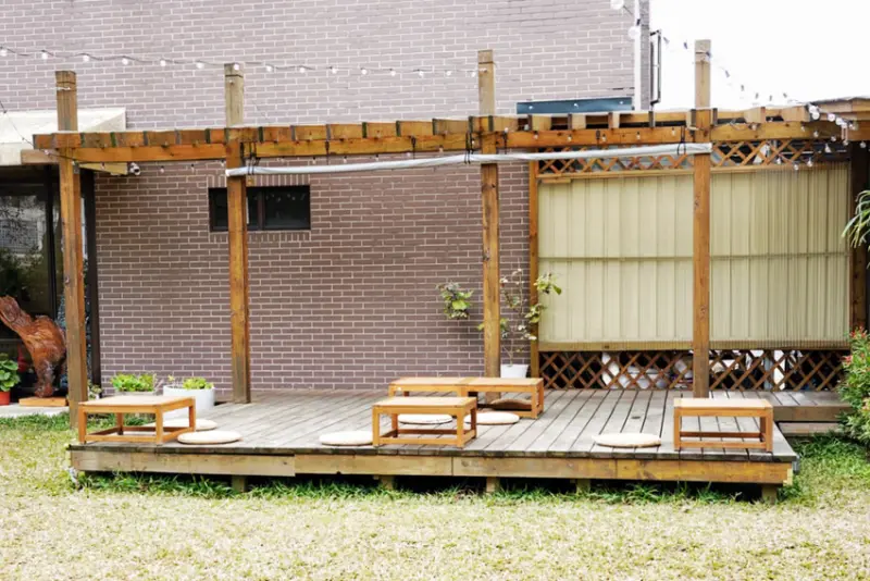 戶外空間還有木棧平台可坐,不定時會推出親子活動課程,真的太適合親子客了~