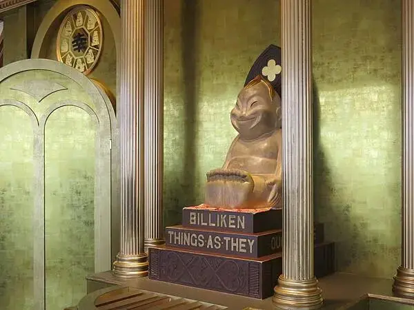 最著名的莫過於這尊巨大的 "比利肯先生",請聽從服務人員的只是並排隊,等著為可愛的 "比利肯先生" 搔癢癢。
