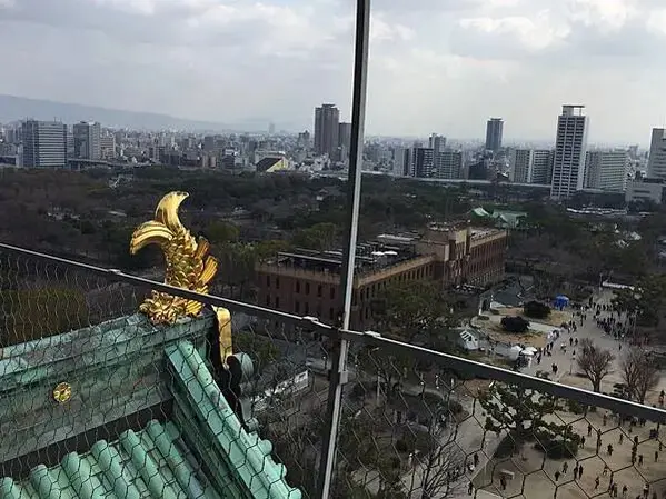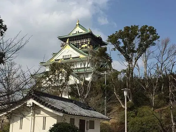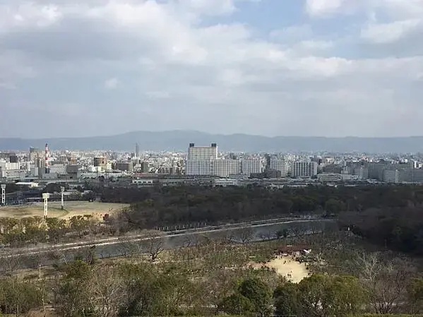 搭乘小火車10-15分鐘後,來到了可以看到大阪城-天守閣的地方。