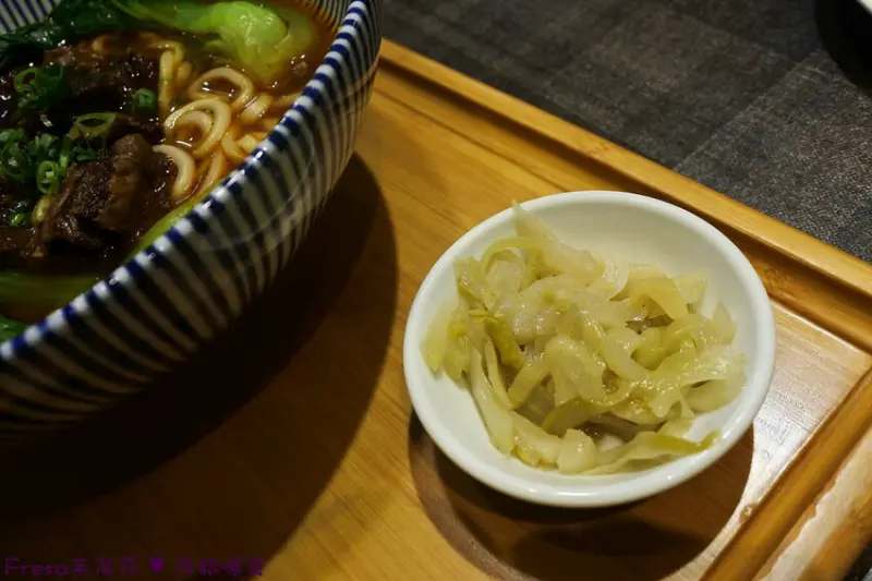 隨盤附上一盤酸菜,可以搭配湯頭和麵條變化口味.
