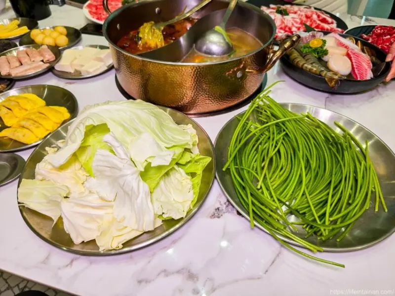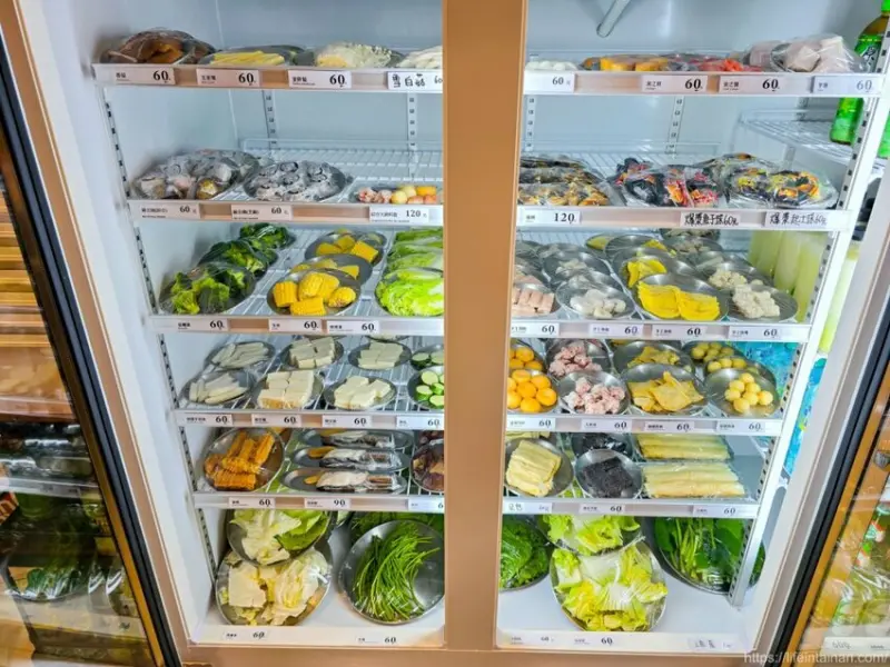 火鍋食材自己拿,上面都有標示價錢,食材都很新鮮,蔬菜沒有黑黑爛爛的。飲料、酒品也是自取。《未成年請勿飲酒》《品項、價錢請依現場公告為準》