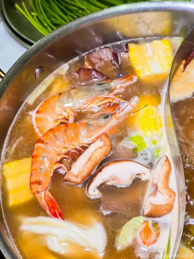 『海鮮盤』有花枝、蝦、干貝、魚片、蛤蠣。建議不要一次把海鮮全部丟進去煮,可以分類少量煮,才不會煮的過老,失去口感和鮮味。