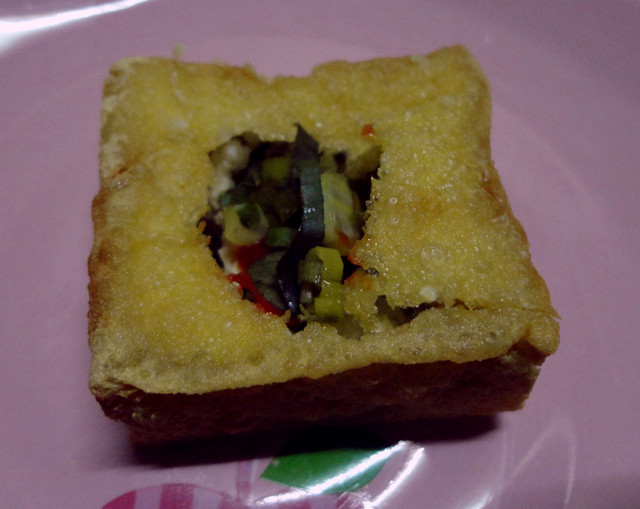 看到臭豆腐時 Vic 用狐疑的眼神看了一下 Vic 姊,醬油呢?!怎麼沒有泡菜?!好吃嗎?!